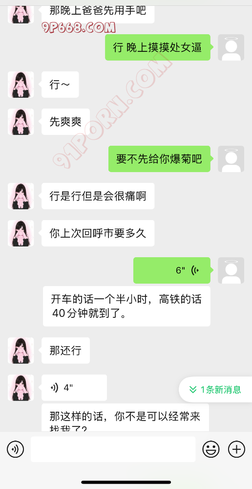 上次车里给我口完就回学校上课了,一直心心念念想让我给她破处,说想到给我口的画面上课的时候下面都会湿。端午节放假回家了第一时间约我,但我毕竟已婚,她又是个不谙世事的小姑娘,怕给她破了处以后缠上我,有点犹豫。晚上找了个借口没见面,又约我明天去宾馆开房,明天看情况吧。